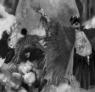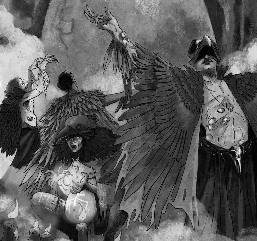 The Cult of the Crow is a strange congregation of societal outcasts who worship Kalatha, the old Vaelorian goddess of Death, Decay, and Corpses. Their history is one of persecution; as newer faiths eclipsed the old Vaelorian pantheon, the worship of a deity presiding over inevitable rot was quickly branded as heresy in the nascent Alderworth Kingdom. Her followers, often those who lived closest to death, were hunted, and as a result they often fled underground, seeking refuge in the deep, dark places of the world. Many found their sanctuary in Ker Nethalas, a realm that resonated with their goddess’ domains and offered a place to practice their foul rites far from the judgment of the surface world.