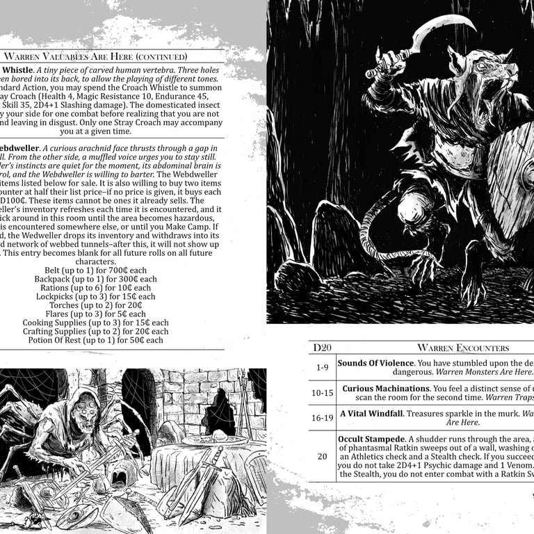 Beneath the city of Iskandria, a forgotten threat stirs: the Ratkin, a hive-minded race of hominid rats tunneling through the necropolis of Ker Nethalas toward Veldonia. Warren of the Ratkin introduces a new Domain for the solo dungeon crawler Ker Nethalas: Into the Midnight Throne, filled with peril, mystery, and creeping dread. Players must navigate a sprawling underground civilization where time, Venom, and the will of the swarm shape every decision and consequence.